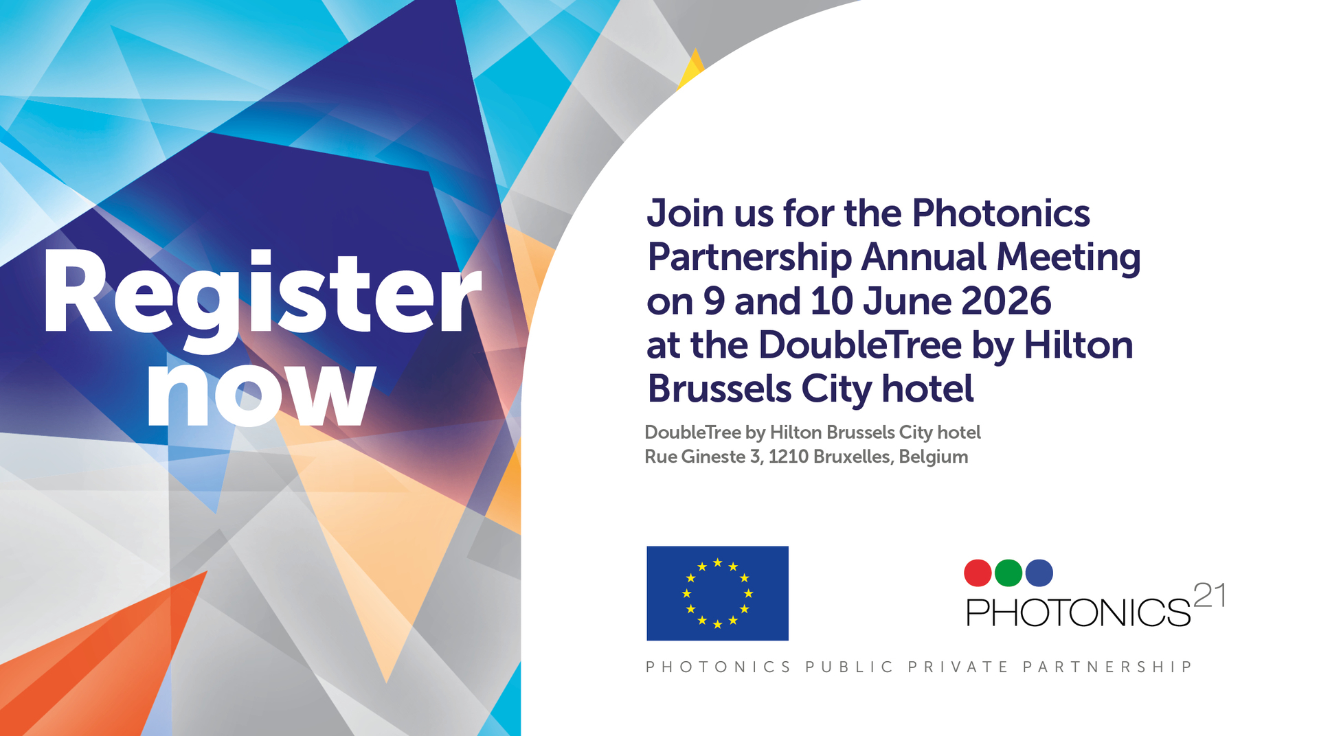 Benefit of the early bird rate & register now to the next Photonics Partnership Annual Meeting 2026, which will take place will at the DoubleTree by Hilton Brussels City hotel on 9 & 10 June 2026!
