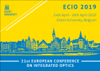 The 21st edition of the European Conference on Integrated Optics (ECIO) (https://www.ecio-2019.org/ ) will take place during April 24 -26, 2019, at Ghent University, in Ghent, Belgium. The conference focuses on leading edge research on integrated optics, opto-electronics and nanophotonics and gathers experts from academia and industry to show their latest technical results, and showcase their products and services. The application scope is broad and it ranges from telecom/datacom to optical sensing applications including more disruptive areas such as quantum and neuromorphic computing. Conference topics cover waveguide technology and platforms, devices and materials, integrated circuits and applications of photonic integrated circuits (PICs). The most recent advances in photonic integration technologies, such as silicon photonics and III-V optoelectronics, is one of the main features of the conference. Assembly, packaging and hybrid integration techniques are also covered. In addition, the conference aims to discuss novel concepts on materials with unique properties such as 2D materials or phase change materials. The chairs of ECIO 2019 are Roel Baets and Gunther Roelkens, from Ghent University-imec.